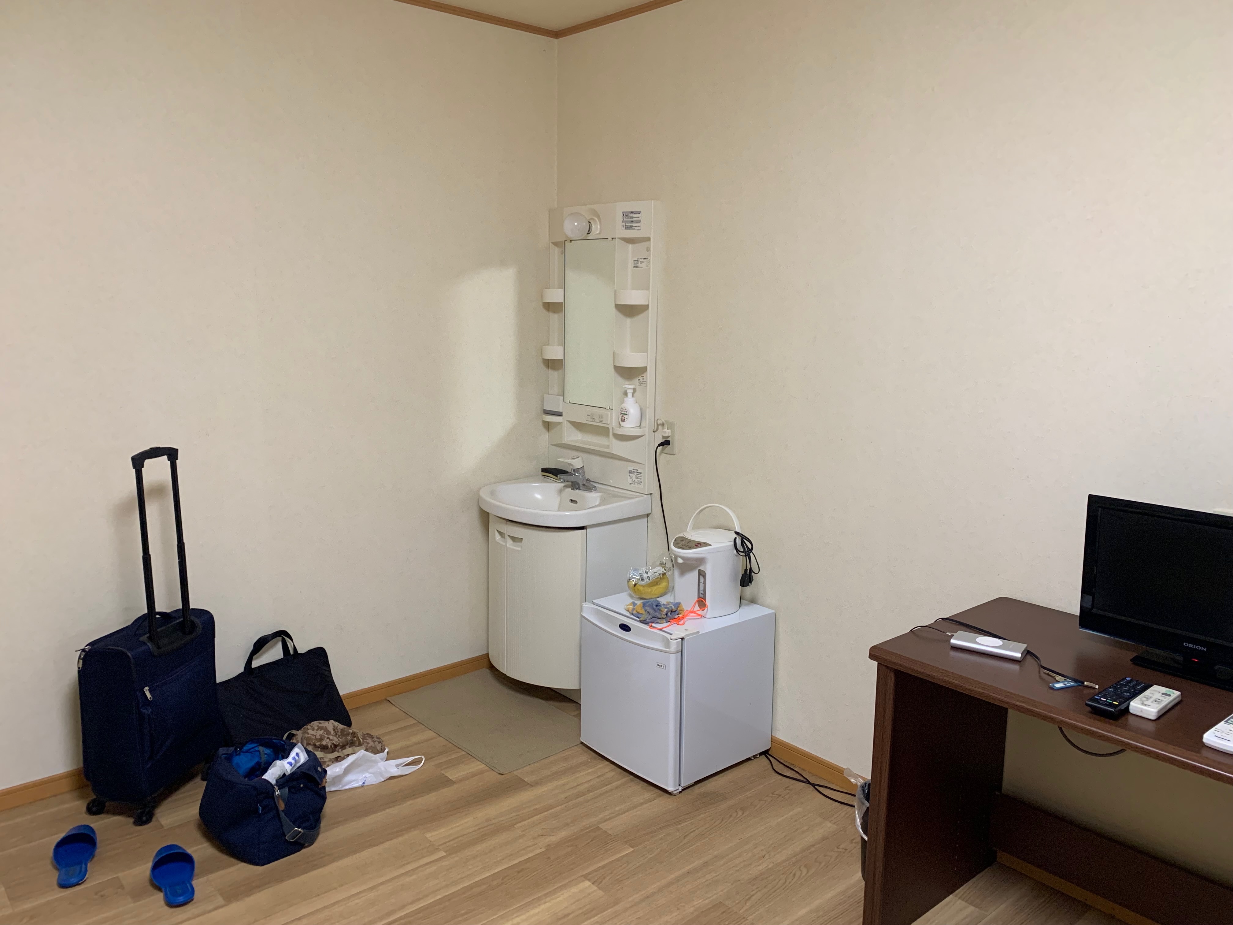 こう至れり尽くせりだが、お風呂だけはちょっと残念だった。共同の風呂が狭く、シャワーが1つしかない。あと更衣室にエアコンは愚か扇風機もなく暑い。