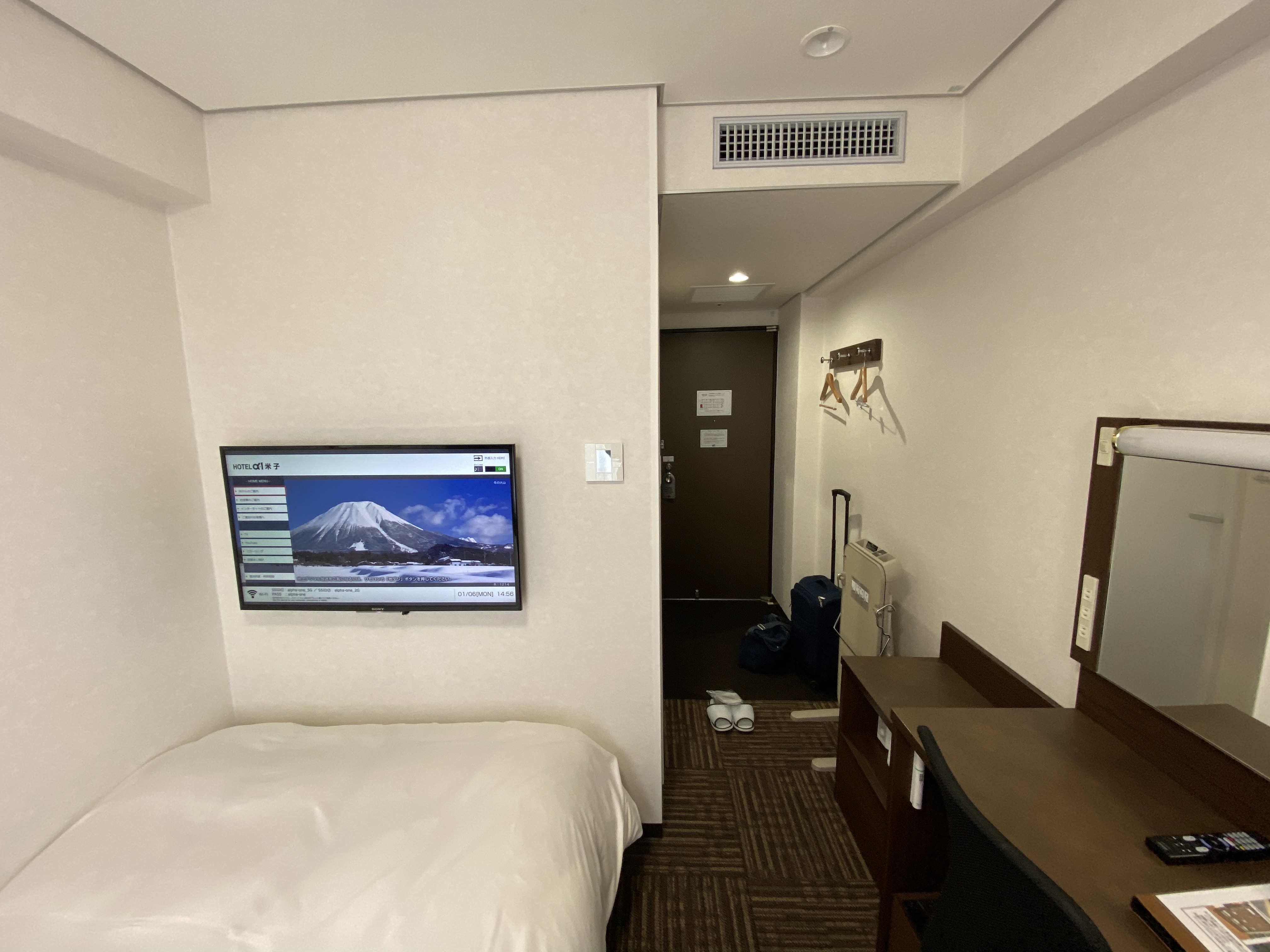 40インチのブラビアが壁掛けされており、ご丁寧にHDMI接続しやすいように延長ケーブルを出してある。これも最近のアルファーワンで見かける設備だ。